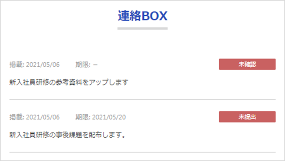 ※教育担当者が課題を指定しており、課題の提出が完了していない場合、ステータスは「未提出」となっています。